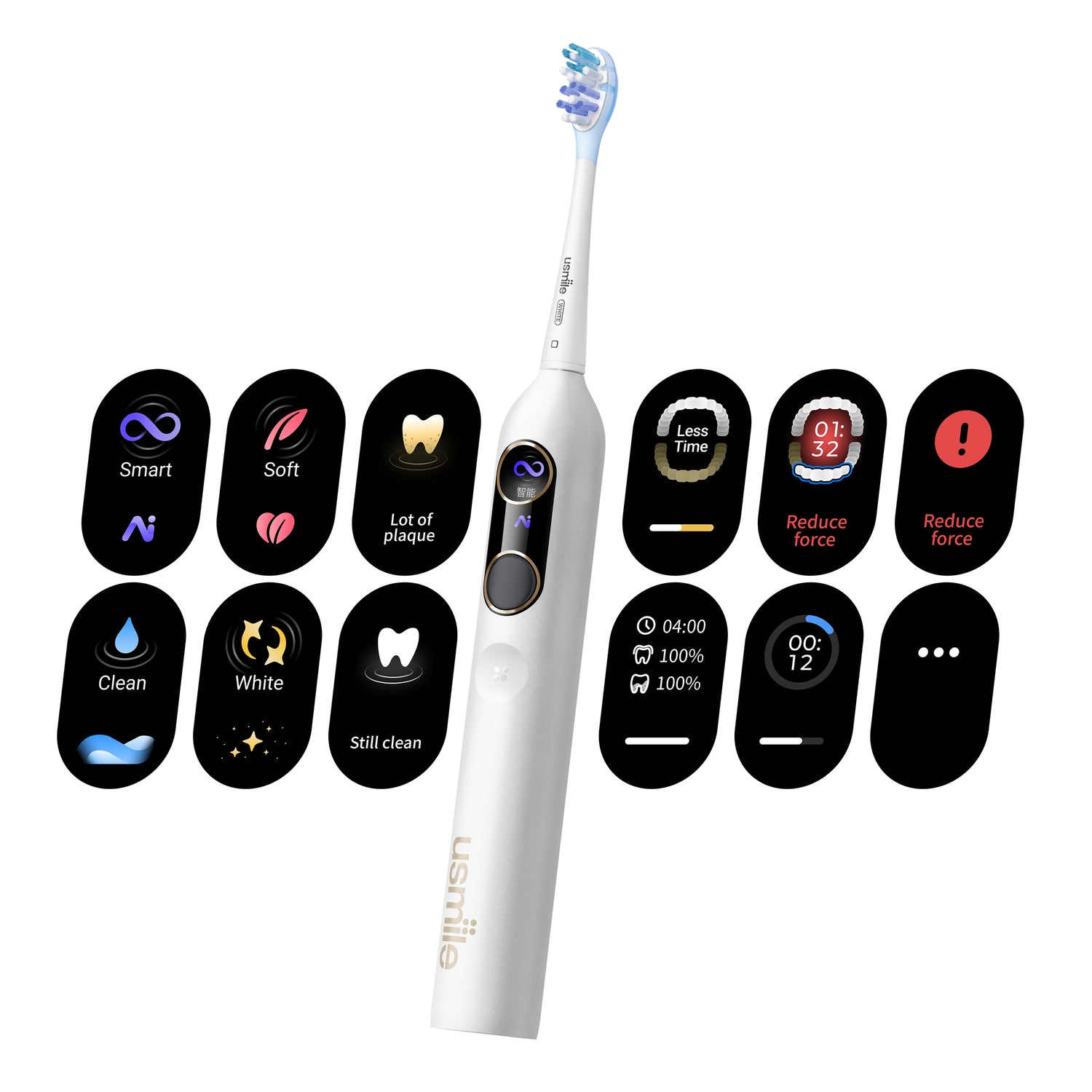 Con tecnología de reconocimiento de posición por IA, usmile Y10 PRO identifica con precisión dónde debes cepillar, brindando a cada área la atención que necesita.